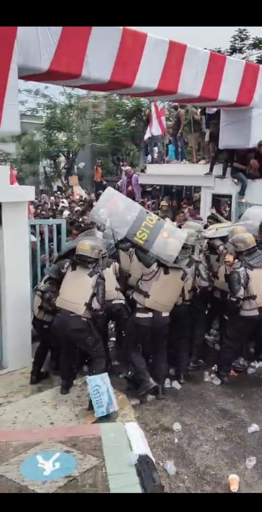 Suasana yang awalnya berjalan dengan damai menjadi memanas ketika aparat keamanan melepaskan tembakan gas airmata untuk mengurai massa yang mulai bertindak anarkis, kumpulan asap menyelimuti area Perkantoran PT TIMAH jalan jend sudirman, membuat massa berhamburan menyelamatkan diri. Seorang peserta aksi diketahui luka dibagian kaki saat mencoba menjauh dari kericuan, Ia mengaku terkena imbas gas air mata yang diarahkan kemassa.Meningkatnya jumlah massa membuat situasi sulit untuk sikendalikan meski aparat KEPOLISIAN dan TNI berusaha menambah pasukan pengamanan, aksi perusakan terlanjur terjadi.Situasi baru mulai mereda setelah aparat TNI melakukan tindakan Persuasif dan peringatan massa untuk mundur. Sumber dilapangan menyebutkan, aksi ini merupakan bentuk protes terhadap kebijaksanaan pembelih bijih timah oleh PT TIMAH yang dinilai terlalu rendah dan memberatkan penambang timah.Massa juga menyoroti tindakan satgas Penertiban Pertimahan ( PKH ) yang kerap melakukan razia tambang rakyat tanpa solusi konkret bagi penambang kecil.Aksi damai hari ini menjadi momentum bagi pemerintah bahwa rakyat penambang tidak meminta lebih, hanya keadilan dan kepastian untuk melanjutkan hidup ditanah sendiri.